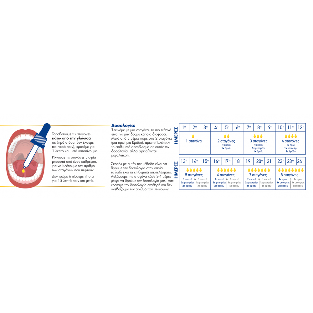 - Συνιστάται να ξεκινήσετε με χαμηλότερες δόσεις και ανά 3 ημέρες να αυξάνετε τον αριθμό των σταγόνων ανά μία σταγόνα μέχρι να δείτε το επιθυμητό αποτέλεσμα.