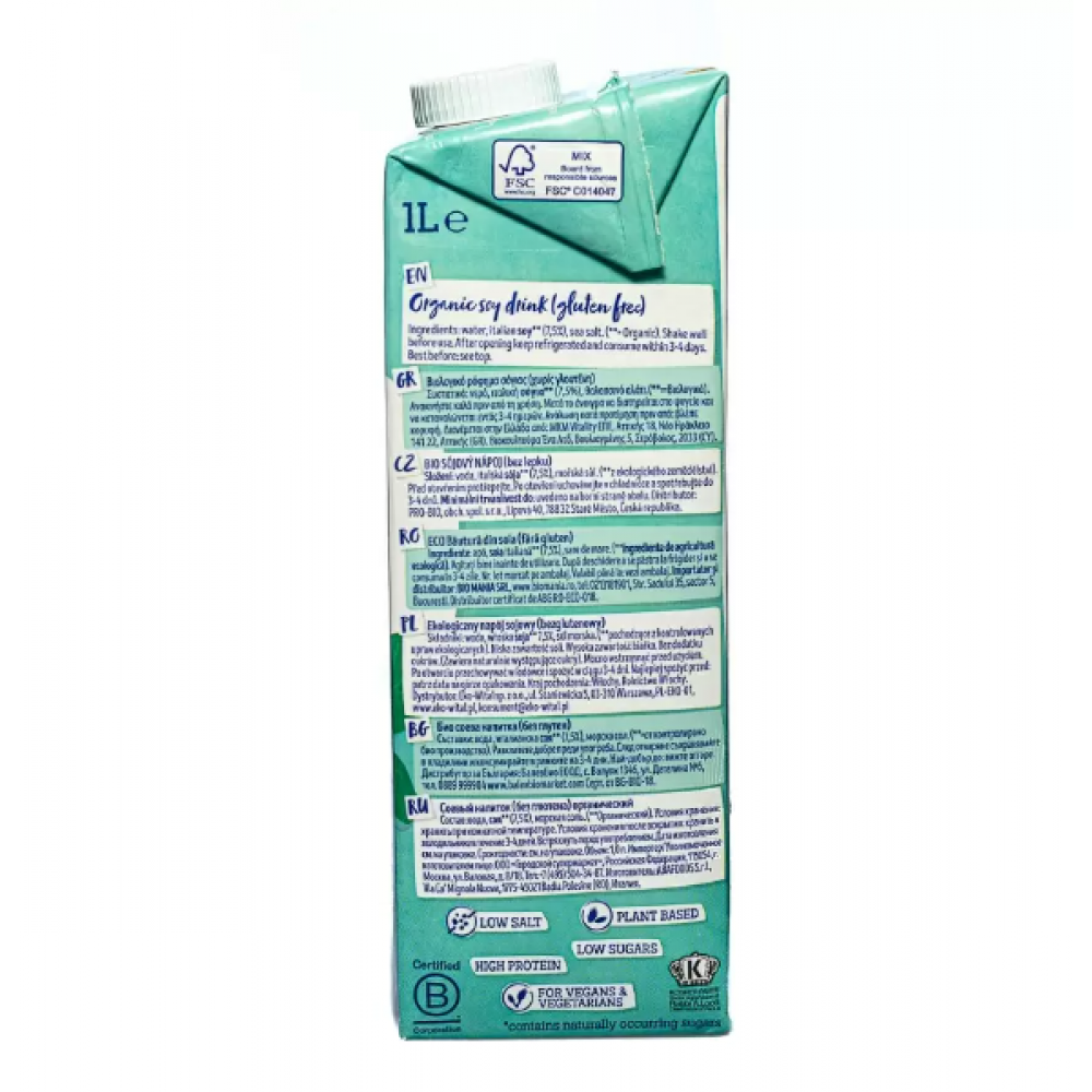 Συστατικά: Νερό, Σόγια Ιταλικής Προέλευσης** (7,5%), Θαλασσινό αλάτι. Όπου ** βιολογικό προϊόν